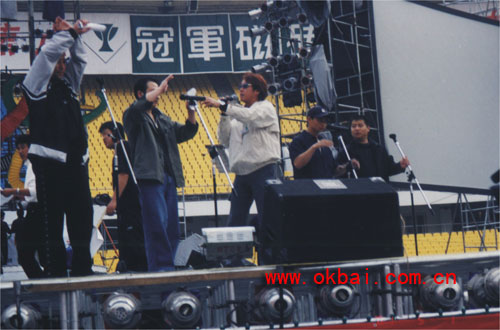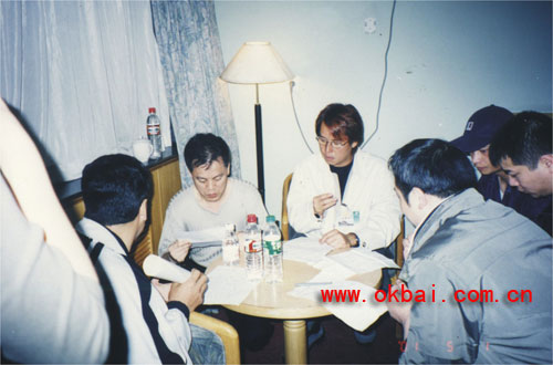 高建华老师在与谭咏麟、奥运冠军们商讨演唱